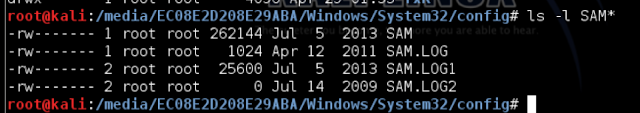The screen shot below lists the SAM database file on my hard drive. The screen shot below lists the SAM database file on my hard drive.